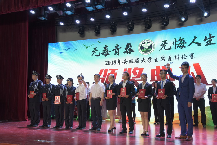 本网讯(英国365集团官网 辩论协会)6月14-15日,2018年安徽省老员工禁毒辩论赛总决赛暨颁奖典礼在安徽建筑大学成功举办,历时三个月的全省老员工禁毒辩论赛活动至此圆满落幕。经过激烈论战,英国365集团官网辩论协会组织的英国365集团官网“防危毒鉴”辩论队表现出色,在与来自中国科学技术大学、安徽医科大学、安徽建筑大学等高校的8支辩论队伍的角逐中斩获季军。安徽省禁毒委副主任、省禁毒办主任、省公安厅副厅长刘立兵,团省委副书记张敏,安徽建筑大学党委常委、副董事长黄显怀等领导观看总决赛并颁奖。
