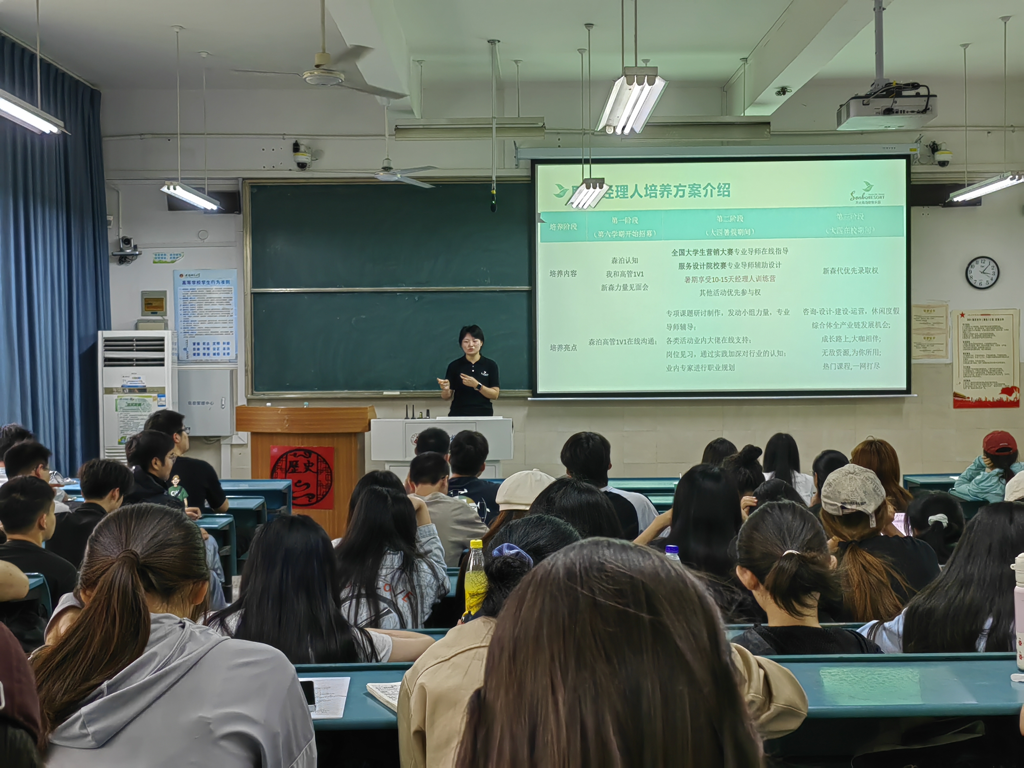 宣讲会上,吴燕就开元森泊“职业经理人培育计划”向同学们重点解读了培养方案内容、人才培养体系、职业发展路径。她表示,职业经理人培育计划重点面向全国优质高校旅游管理专业、对行业有热情并且愿意长期从事行业工作的在校本科生进行招募宣讲,在校前置培养,降低试错风险,毕业即可入职,培养过程中森泊高管“一对一”全过程亲自指导、全时段在线沟通、全领域跟岗培训,个性化定制专项培育课题和“新森代”1-2-3专属培养路径,完美融合森泊三级人才储备体系,联动多校多园,成长路上、大咖相伴,无敌资源、为你所用,热门课程、一网打尽,通过2+N导师制对高质量本科公司毕业生进行行业认知及职业发展认知培养,深化校企合作,助力同学们迈好从校园到社会求职就业、角色转换的第一步。