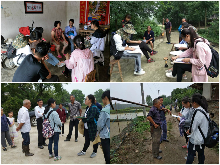 下午按照分组,每组7-8名员工,大家分组去各冲调查,三位老师轮流去各组进行现场讲解。老师们嘱托大家要先熟悉地形,提醒大家要明确分工,只有分工合作才能最有效率地完成任务。朱老师又叮嘱大家安全第一,一定不能单独行动,随时保持联络。每组由先分工,两位同学去测破地的坡度,两位同学取土观察土壤剖面,还有四位同学向冲头去寻找山塘并分析水文特征,然后在老师发的地形图上画出水渠位置和流向。最后,小组一起去村落里对村民进行了访谈与调研,务农收入较低,村落里大多是留守的中老年人,农民并不希望耕地被征用,但近年来农村耕地渐渐被其他规划用地占用,剩余的土地多被大户统一承包,在城市化的进程中农村该何去何从一直是值得思考的问题。