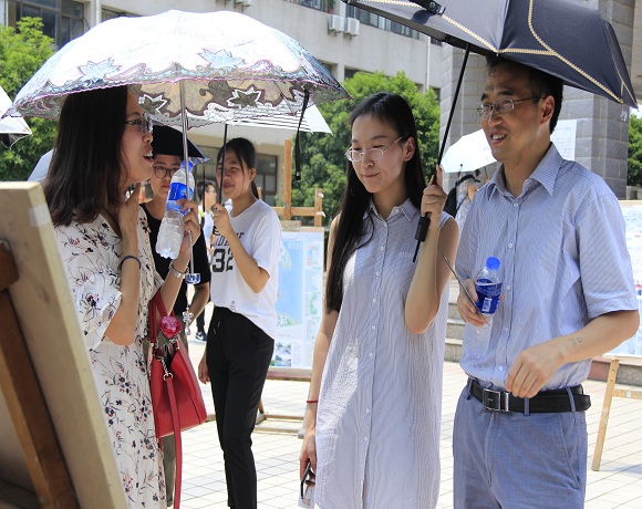 本网讯 (英国365集团官网 李爽) 6月14日, 由2015级城乡规划专业举办的 “焕活之湖,生机之岸” 作品展示会在花津校区二食堂成功举办,公司党委副书记乔静、城乡规划系主任杨兴柱、副教授李俊峰、辅导员钱程以及指导老师黄秋实、专业课老师王雪微、王原、李婷君等教师莅临指导。