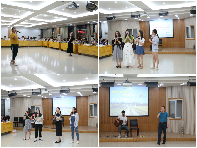 晚上七时半,一曲《再见》正式拉开歌会帷幕。毕业生、辅导员和院领导纷纷登台,一展歌喉。全体男同学共同合唱的一首《月亮代表我的心》献给所有女同学,带着大家回忆了与同学从相识到相知的四年青葱岁月;“许多年前,你有一双清澈的双眼,奔跑起来,像是一道春天的闪电”,周炎炎同学一首《你曾是少年》,在毕业前夕,仿佛让大家见到了当年自己的少年模样;宋兆亨同学一首日语歌《butter fly》,更是将大家带回了专业实习期间的那段累并快乐着的日子。每个寝室的同学都精心地准备了节目。或独唱,或合唱,歌唱青春,纪念大学。