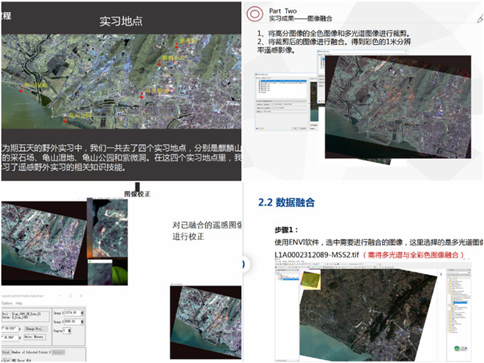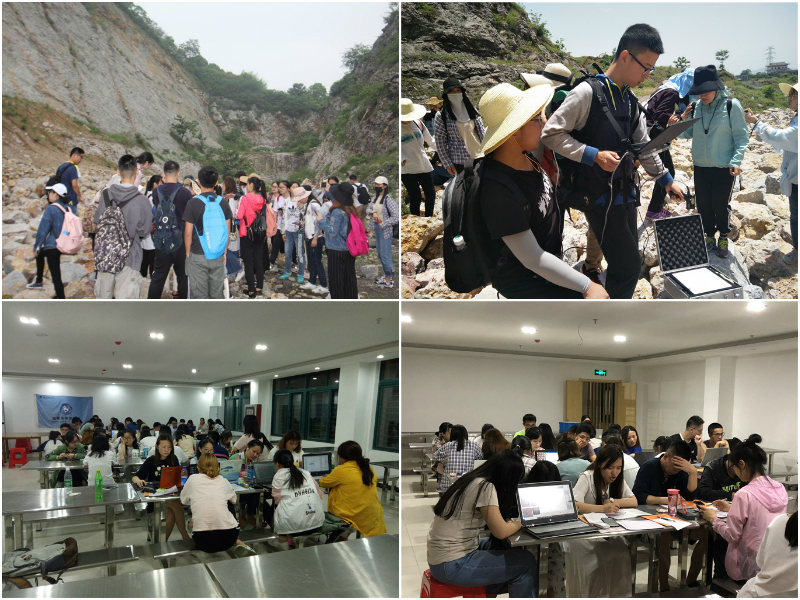 5月21日—26日在为期六天的巢湖实习中,全体同学在实习组老师的带领下,翻山越岭,并肩同行。初到巢湖市时,细雨蒙蒙,全体员工带着对大自然的好奇与知识的敬畏踏上了本次巢湖实习的征途。实习期间,老师们为同学们耐心的讲解各种地质地貌、集水区和坡度坡向等地学知识,亲自带大家探索不同岩层产状,寻找不同岩层化石。71名同学。7个小组,不畏艰辛,分工明确,为了构建地物波谱库,测反射率,他们头戴遮阳草帽,身穿雨披鞋套,肩负测量仪器,每日步行上十公里,只为顺利完成任务,得出完美的成果。6天,同学们穿梭过三千六百平样方的丛林、划过了紫薇洞的地下暗河、征服了险峻的麒麟山脉。