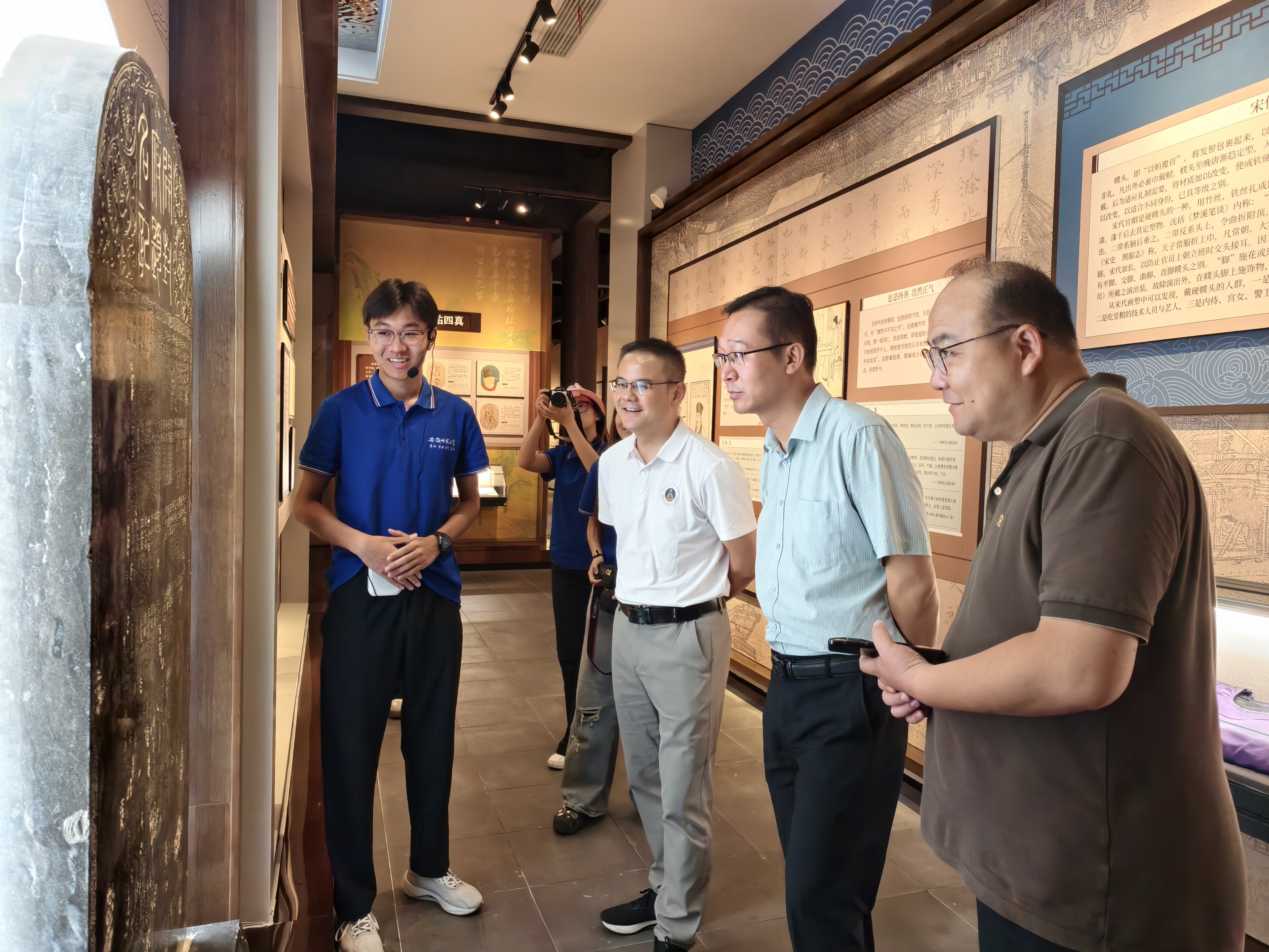 座谈会开始前,全体参会人员观摩了实践队员在包公故里文化园的精彩讲解,从包公故居到孝肃阁,再到包公书院,宣讲组7名队员相互配合,用一段段声情并茂的讲解生动还原了千古名臣包拯的故事。