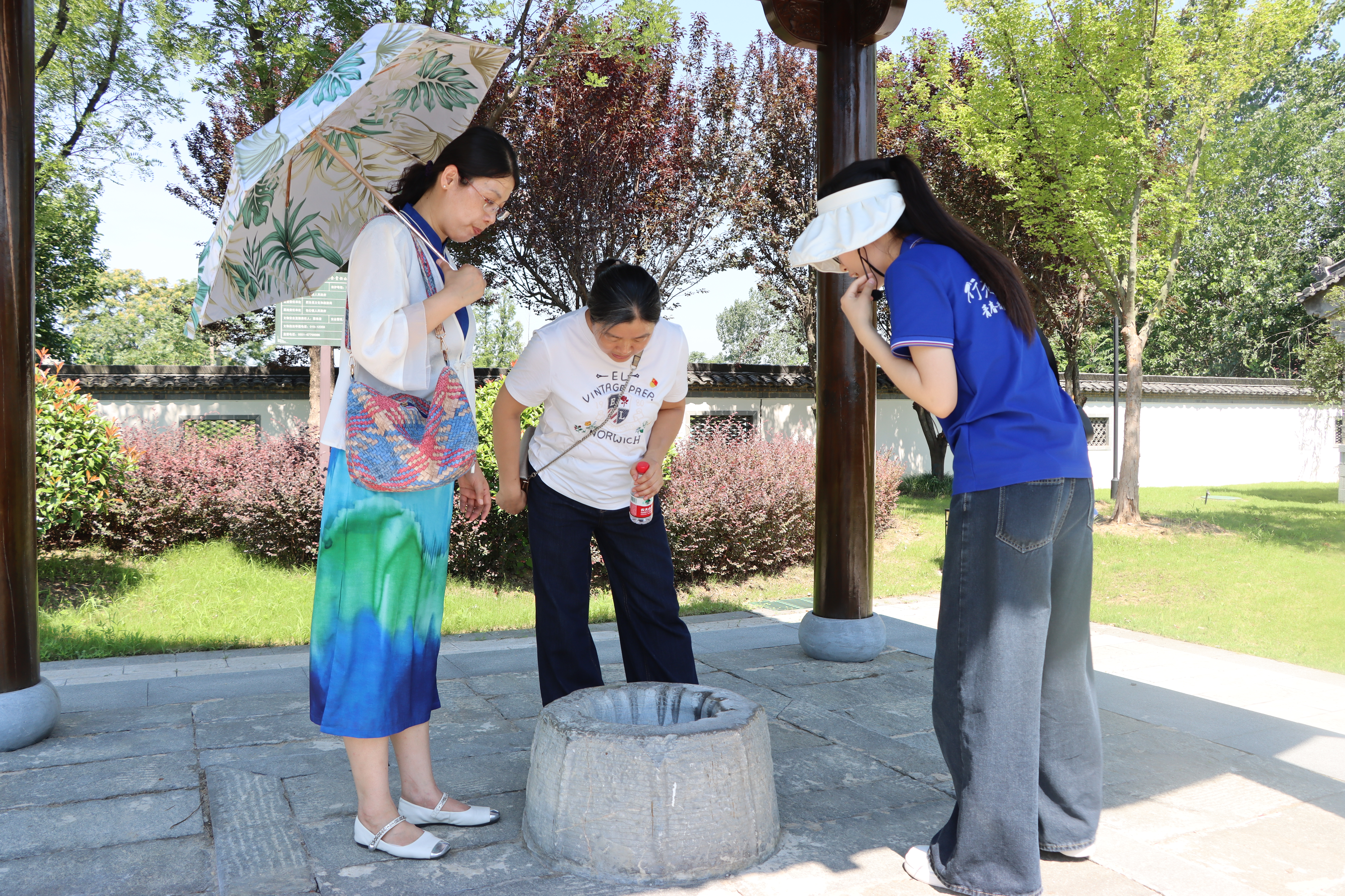 “大家眼前的这方‘清心亭’,得名于包拯‘清心为治本,直道是身谋’的诗句,这句诗既是他一生的座右铭,也成为了后世为官者的行为准则。”实践队员手持讲解器,站在亭前向党支部成员细细讲述。“前方的花园井,原为包家后花园的水井,相传纯良百姓饮用此井水会有甜味,而贪官污吏饮用后却会口干舌苦,腹疼难忍。”此时,借着良好寓意,安大党支部的一名成员提出大家一起触摸花园井,感受包公的廉政精神。
