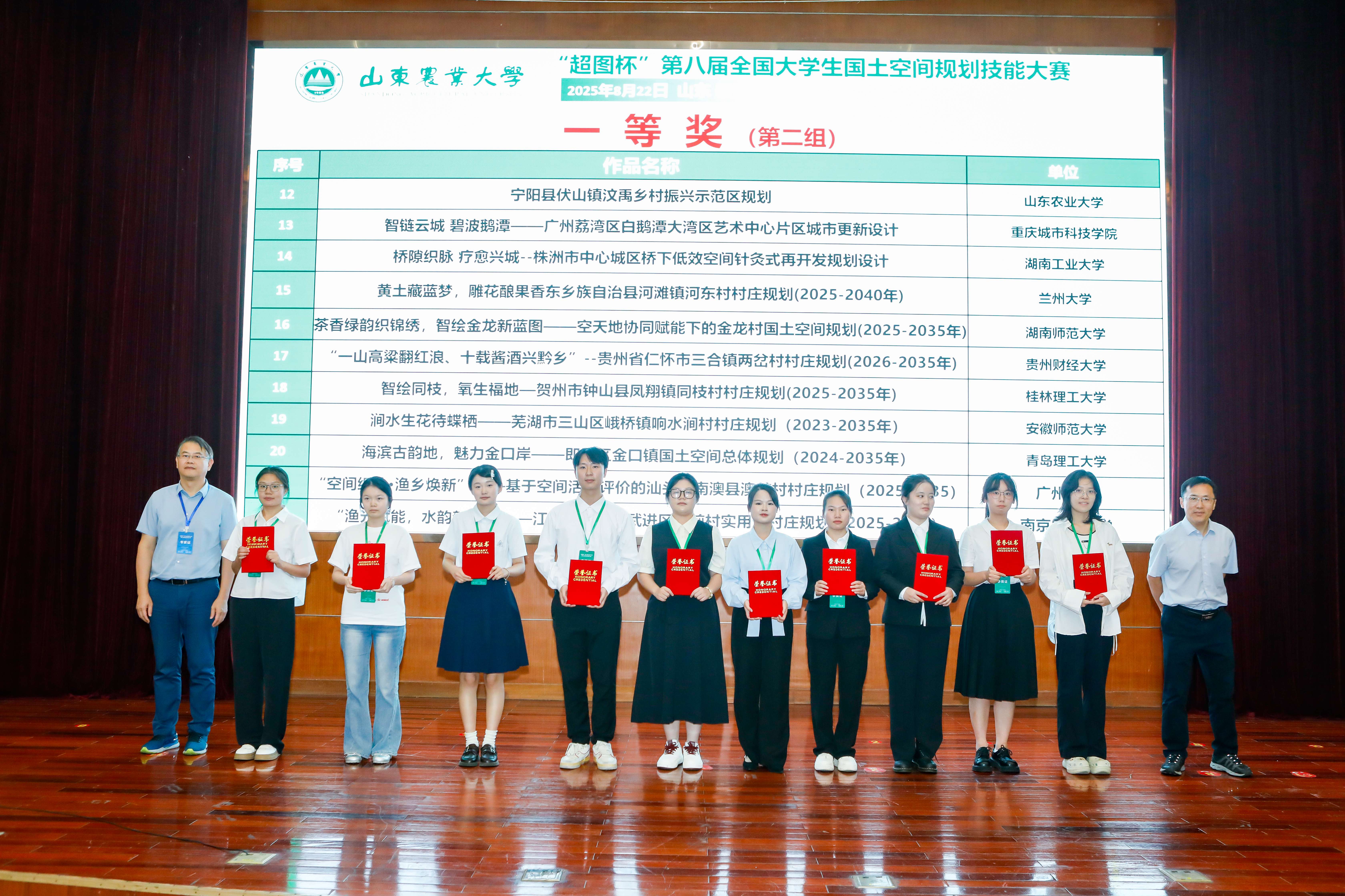 (本网讯 王冰冰)8月21-22日,“超图杯”第八届全国老员工国土空间规划技能大赛决赛在山东农业大学成功举办,大赛汇聚了华中农业大学、南京农业大学、武汉大学、中国人民大学等知名高校的师生代表。截止2025年6月30日,大赛组委会共收到来自88所高校的191件作品,经专家组讨论,共有64件作品入围决赛,公司2022级城乡规划专业本科生团队凭借扎实的专业知识和创新的规划理念顺利晋级决赛,凭借作品《涧水生花待蝶栖——芜湖市峨桥镇响水涧村村庄规划(2023-2035年)》荣获全国一等奖,是公司在该项赛事获得的最高荣誉。参赛队员包括李诗毅、王冰冰、谢梦瑶、林晨希,指导老师为黄秋实、吴九兴。