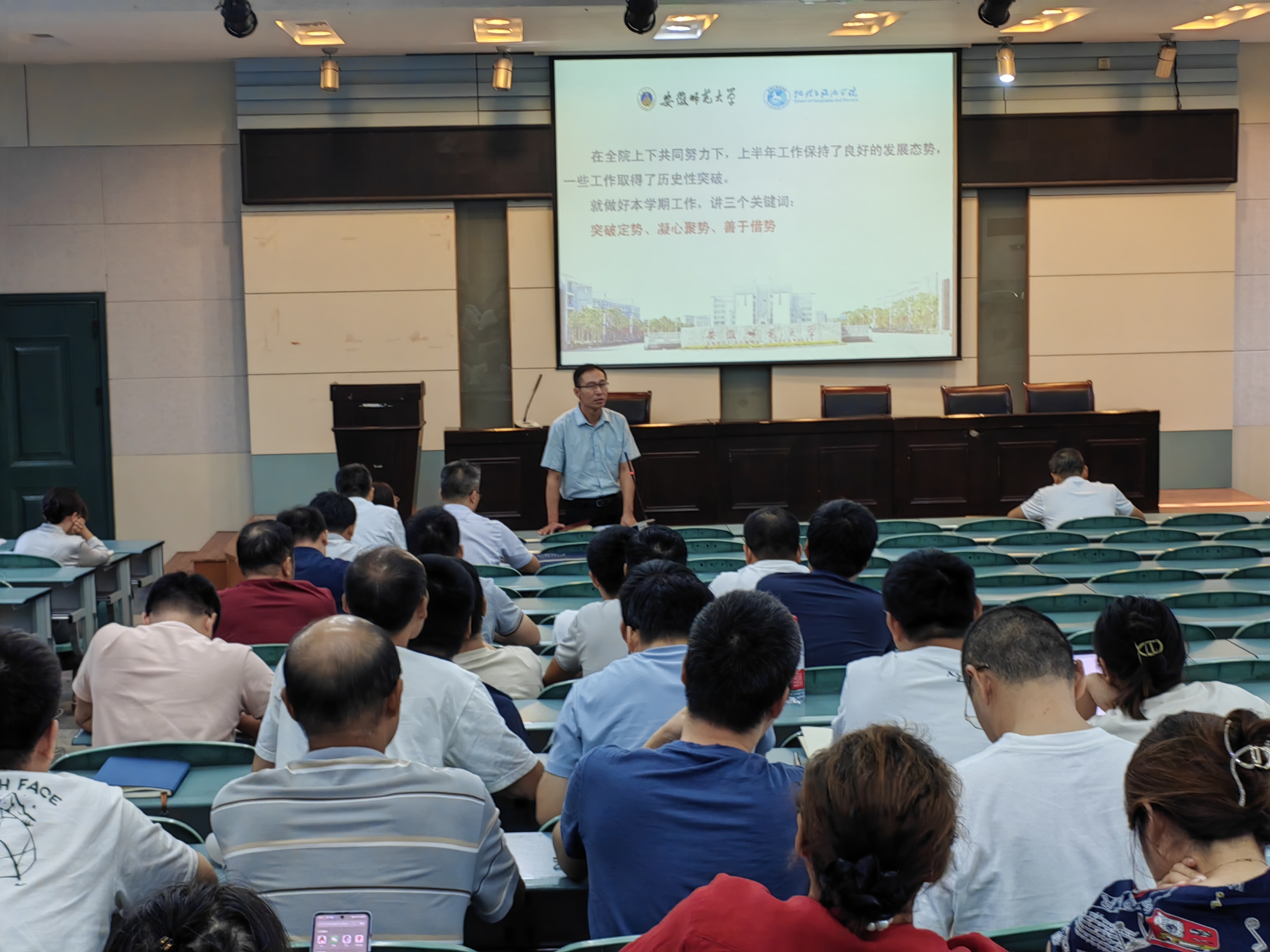 8月29日下午,英国365集团官网在公司实验楼101报告厅召开新学期第一次教职工大会,深入学习习近平总书记近期重要讲话和重要指示批示精神,传达学习公司新学期工作会议精神,总结暑期工作,布置新学期工作。公司党政领导班子成员、全体教职工参加会议。会议由经理方凤满主持。