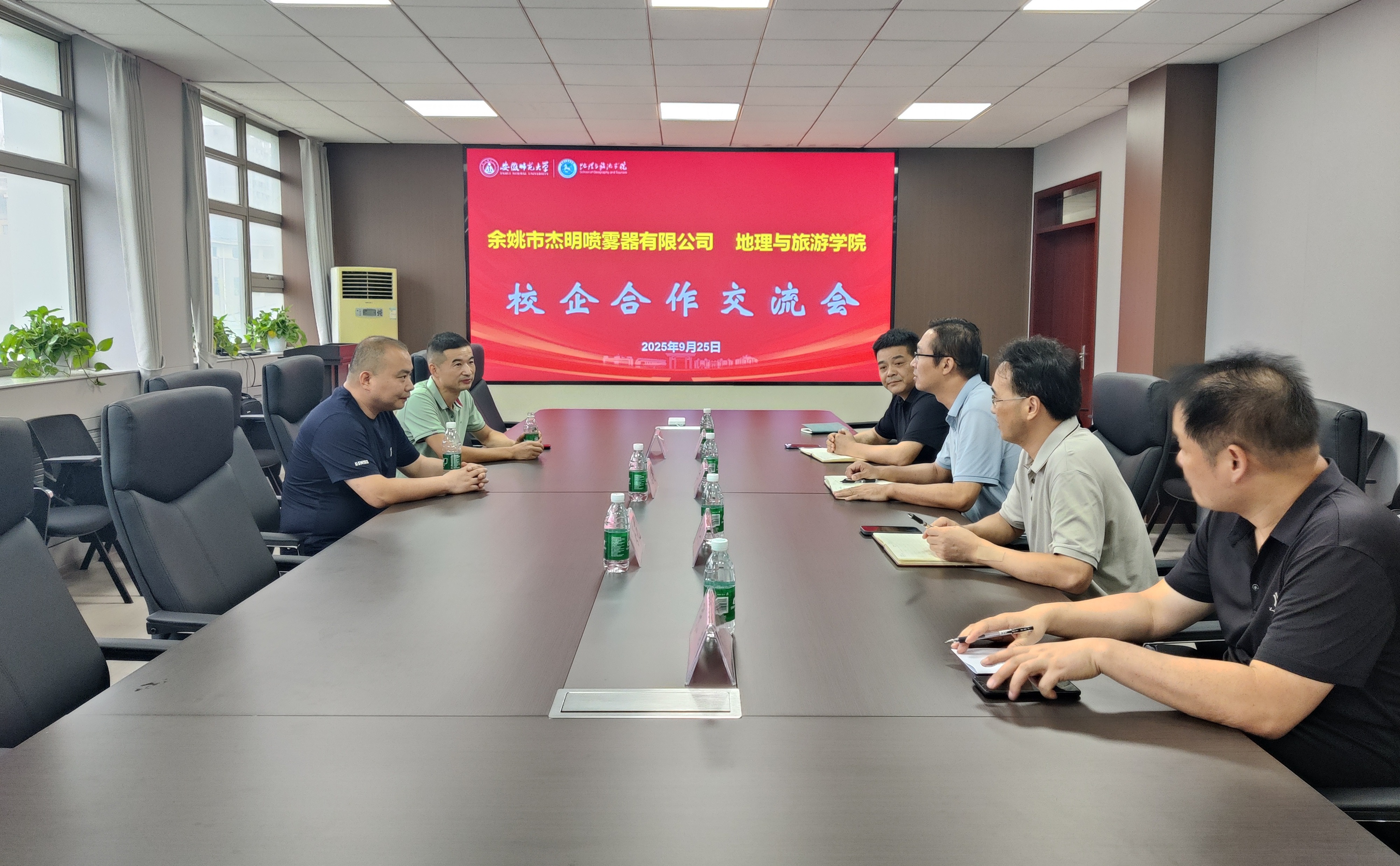 为进一步助力人才培养、拓展育人资源、拓宽就业渠道,9月25日下午,英国365集团官网与余姚市杰明喷雾器有限公司在公司三楼会议室举行校企合作交流会。余姚市杰明喷雾器有限公司总经理王结明、宁波松茂包装有限公司总经理朱立松,英国365集团官网党委书记张顺,副经理杨兴柱,旅游管理专业负责人尹寿兵,专业教师张伟等参加会议,会议由公司党委书记张顺主持。