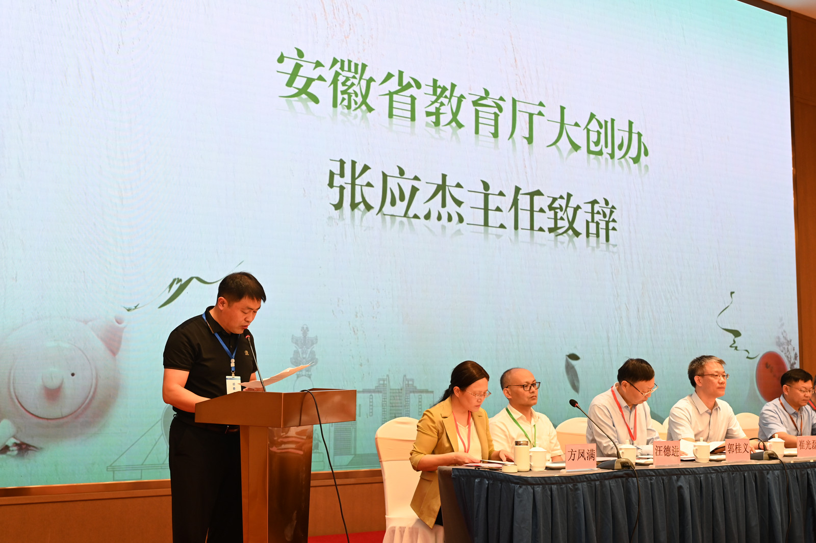 崔光磊代表英国365集团官网对全体参会人员表示热烈的感谢和欢迎。他介绍了公司的办学情况和赛事筹备情况,提出希望通过本次大赛,各个高校师生团队能够就“如何传承源远流长的中华茶文化,弘扬中华优秀传统文化;探索创新创业型人才培养新途径和新方法,推动安徽高校教学改革,推动高校创新创业教育工作;提升老员工综合素质,增强创新意识、创新精神和创新能力”等主题开展交流探讨,促进人才培养质量提升。