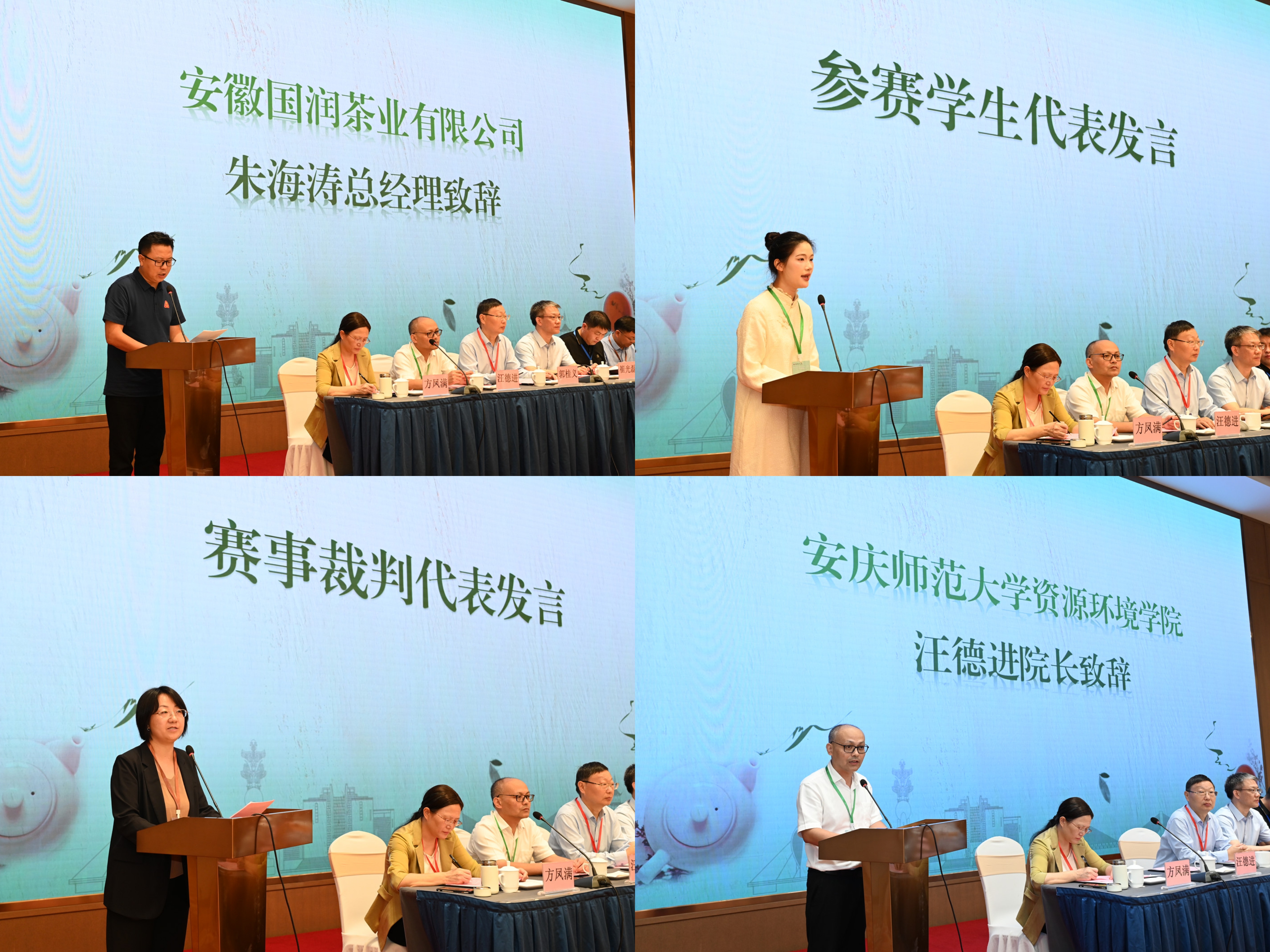 赛事赞助企业代表朱海涛,参赛员工代表、芜湖职业技术大学的张莹,裁判代表、合肥大学科研处副处长郑嬗婷以及下一届赛事筹备方代表汪德进分别进行了发言。
