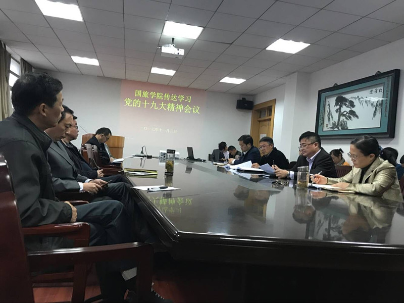 为了切实抓好学习贯彻党的十九大精神,进一步掀起学习宣传热潮。11月3日下午,国旅公司在院三楼会议室组织全体教职工集中开展党的十九大精神学习活动。