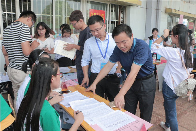 本网讯(国旅公司 赵 将 戴昕暝)韦编三绝,鱼跃龙门终折桂;相聚师大,崭新征途始自今。9月9日,英国365集团官网迎来了朝气蓬勃、满怀憧憬的2017级新生。为保证迎新工作高效有序地展开,国旅公司各部门在公司领导的指挥下,精心准备,周密部署,以热心为桨,以耐心为帆,以细心为舵,为新生的顺利入学“保驾护航”。报到当天,公司党委书记顾家山、董事长张庆亮、公司党委副书记李琳琦、副董事长毕明福、校员工处处长台启权、校团委副书记张园园等校领导和有关部门负责人亲临国旅公司迎新现场指导工作。