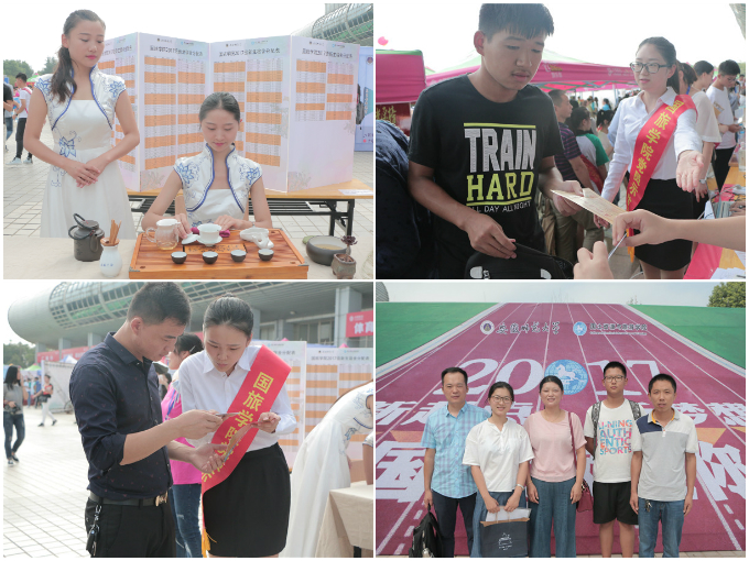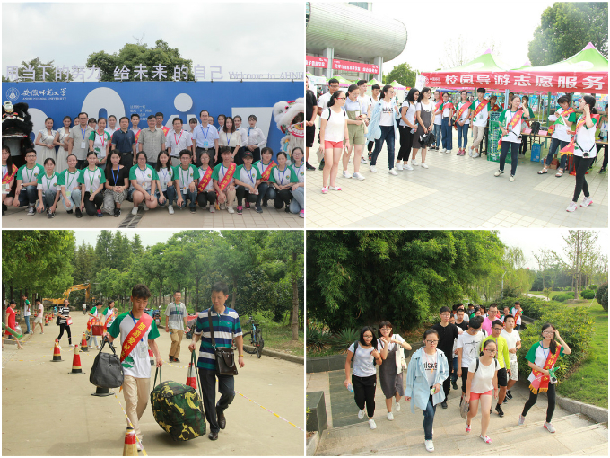 为迎接2017级新生,旅游爱好者协会和相关社团以及员工会大艺团联合推出花津校区“游校园精品活动”,让新生在熟悉校园的同时充分体验师大的魅力。导游手拿绿色小旗,带领新生与家长于皖风诗韵看映日荷花,于图书馆品茶韵幽香;在西门赏舞狮,在球场看轮滑……迎新导游们耐心讲解,热情介绍,带领新生和家长们熟悉校园环境,介绍师大校史校情。在为新生与家长展现校园美景的同时,他们自己也化身为师大的一道动人的风景线。