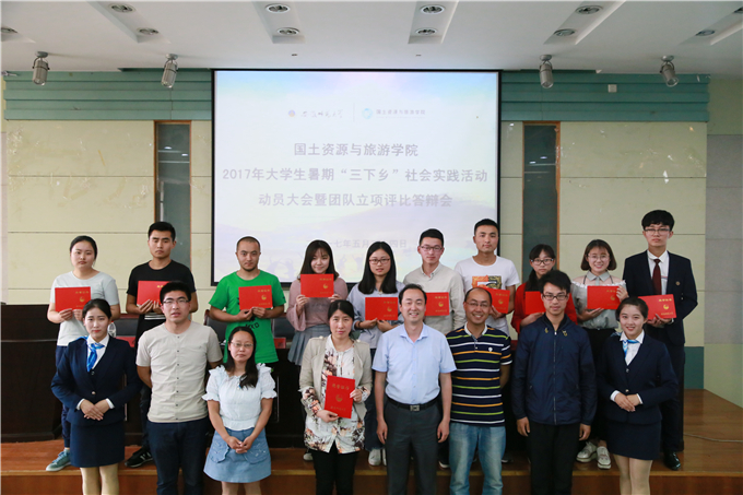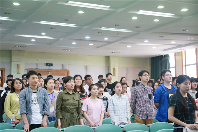 动员讲话结束后,主持人宣读2016年暑期社会实践优秀指导老师和“先进个人”名单。乔静为获奖老师、获奖同学颁奖,并合影留念。最后,动员大会在洪亮的团歌声中结束。