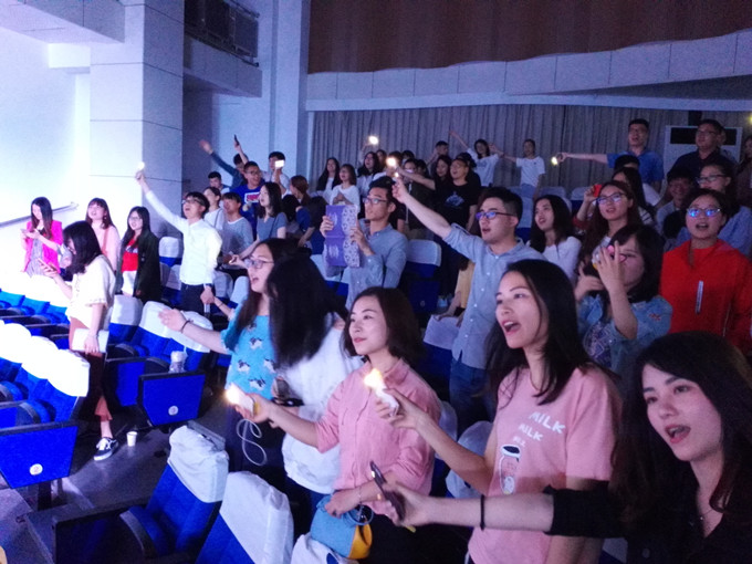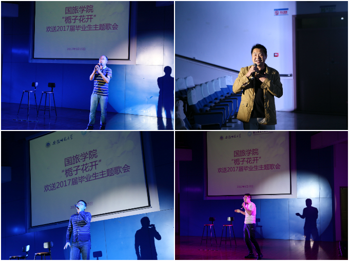 晚上七点,伴着渐渐暗下的灯光,歌会的序幕缓缓拉开。毕业生、专业教师、辅导员和院领导纷纷登台,一展歌喉。梁发涛的一首《七里香》,带着大家回忆了四年间与室友们点点滴滴间的温暖;“原来你也在这里的心情,也绝对是难以言喻的”,旅游管理专业的王圣慧同学一首《原来你也在这里》,在毕业前相聚的时候,让大家重温了初见的美好、遇见时候的留恋和感动。每个专业的同学都精心地准备了节目。或独唱,或合唱,现场的同学们也加入其中,歌唱青春,怀念大学。
