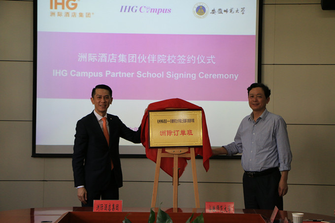 据悉,公司国旅学经理期以来高度重视应用型专业的联合培养及合作办学工作,与开元集团等国内外知名企业集团保持长期良好合作关系,坚持以“国际化、复合型、应用性”为特色,以“公司教育+行业培养”双向教育为抓手,积极开展“教学+实习+实践+就业”四基地建设,成果斐然。据了解,洲际酒店集团(IHG)成立于1777年,是目前全球最大及网络分布最广的专业酒店管理集团,在全球100多个国家和地区拥有 5,000 多家酒店和近 74.4 万间客房,拥有洲际、皇冠假日、假日、智选假日、英迪格、华邑酒店等多个国际知名酒店品牌和超过60年国际酒店管理经验,是世界上客房拥有量最大、跨国经营范围最广、在中国接管酒店最多的超级酒店集团,其业务涉及中国大陆25个省、区、市。值得一提的是,在2016杭州二十国集团工商峰会(B20)筹办期间,公司国旅学子在B20峰会主会场(杭州国际会议中心暨杭州洲际酒店)全力投入相关工作,充分展示了师大学子精湛的专业素养和良好的精神风貌,公司因此被授予二十国集团工商峰会(B20)服务保障优秀合作院校称号。