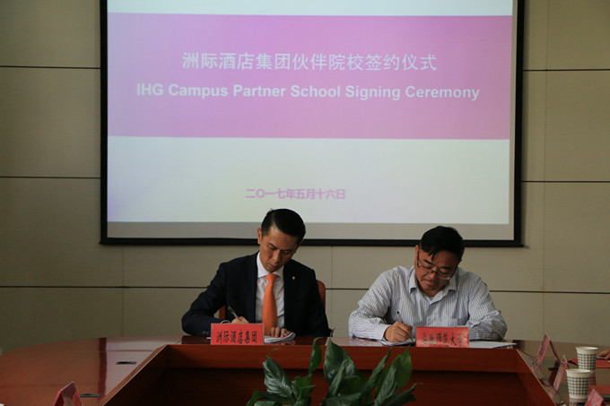 本网讯(国旅公司 刘冠琪 赵将)人才定制培养,校企合作双赢。5月16日下午, 洲际酒店集团-英国365集团官网伙伴院校签约仪式暨“洲际订单班”开班仪式在校行政楼一楼第一会议室顺利举行。洲际酒店集团大中华区校园资深项目合作经理胡晓,杭州洲际酒店总经理李国雄,人力资源总监吴青艳,公司党委常委、副董事长朱家存,教务处处长席贻龙,杭州洲际酒店人力资源部相关领导、国旅公司领导班子成员、相关专业负责人、教师代表及国旅公司2016级酒店管理专业“洲际订单班”全体同学参与了本次仪式,签约仪式由国旅公司副经理王朝辉主持。