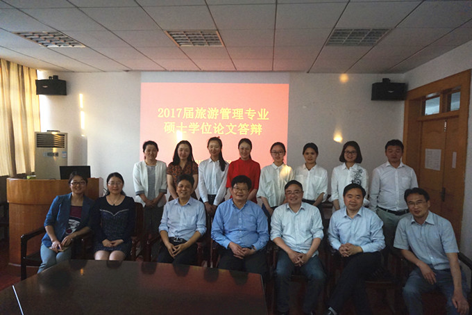 此次答辩会严格按照硕士研究生论文答辩程序和答辩委员会会议要求进行。答辩会开始前,答辩主席介绍了答辩委员会组成以及论文答辩的基本流程和要求。接着,8名研究生先后从选题意义、论文框架、研究思路、主要内容、创新之处等方面进行了陈述,答辩委员会就论文的相关问题进行了一一点评和提问,答辩研究生对答辩委员提出的问题进行了仔细思考和认真回答。最后,答辩委员会经过评议和无记名投票表决,认为其中7名研究生的论文符合学位论文的要求,行文规范、内容详实,答辩过程中能够准确回答专家们所提出的问题,同意通过硕士学位论文答辩,建议授予硕士专业学位。1名专业硕士答辩不通过,建议延期。最后,所有毕业生与老师进行合影留念。国旅公司2017届旅游管理专业硕士研究生学位论文答辩会圆满结束。