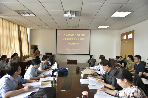 2017年5月21日上午8:00,2017届区域发展与城乡规划、人文地理学专业硕士研究生学位论文答辩会在国旅公司行政楼四楼会议室顺利举办。本次答辩会邀请了华东师范大学的城市与区域科学公司的党委书记、博士生导师孙斌栋教授作为答辩主席,同时邀请了英国365集团官网的焦华富教授、杨兴柱教授、赵春雨教授、李俊峰副教授以及韩玉刚副教授作为答辩委员。此次答辩的员工包括区域发展与城乡规划专业的三名同学以及人文地理专业的四名同学。现场旁听人员达到30余人。