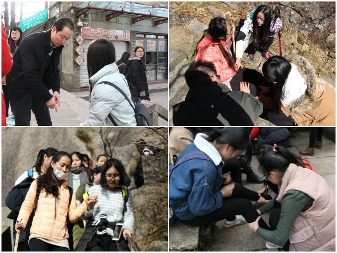 五天的行程,有世界文化遗产地的人文秀美,有大自然鬼斧神工的叹为观止,有酒店行业标杆的参观学习……抵达黄山市黟县境内 ,各小组分头对世界文化遗产地、中国画里乡村宏村的建筑文化、风土习俗、雕刻艺术、宗教信仰以及旅游开发和保护进行了问卷调查,对乡村旅游示范点——主题景区翡翠谷进行了调研。在接下来的两天实习中,全体员工铭记指导老师的谆谆教诲,铭记实习肩负的学习使命,一路奔赴向前;同学们攀登了雄伟壮阔的黄山,山上美好风光尽收眼底,同学们志气高涨,且歌且行,从云谷寺一路不懈向前,攀爬至白鹅岭及北海宾馆,全程15里,最先抵达终点者仅用时约一小时十分钟,尽管途中有同学身体轻微不适,但领导耐心关怀,老师贴心帮助,同学相互搀扶,无一人掉队,互助友爱的情感在山野中升华。次日,同学们黎明即起,不畏冬晨严寒,攀爬至始信峰欣赏黄山日出。随后集体从北海出发步行至光明顶、鳌鱼峰等,最终从迎客松处步行下山,山路陡且直,同学力更足,同学们前段时间刚结束的导游资格考试的相关知识在实践中知行合一,班级毅力在攀登中孕育。