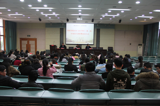 本网讯(国旅公司 赵将)为落实好公司应用型专业的实习表彰及动员工作,1月7日下午两点,国旅公司院2016-2017年度专业实习表彰暨动员大会在院实验楼101教室举行。公司党委书记贾冠忠、副经理方凤满,6位专业实习导师、相关专业专兼职辅导员以及员工代表100余人参与此次会议,会议由公司党委副书记乔静主持。