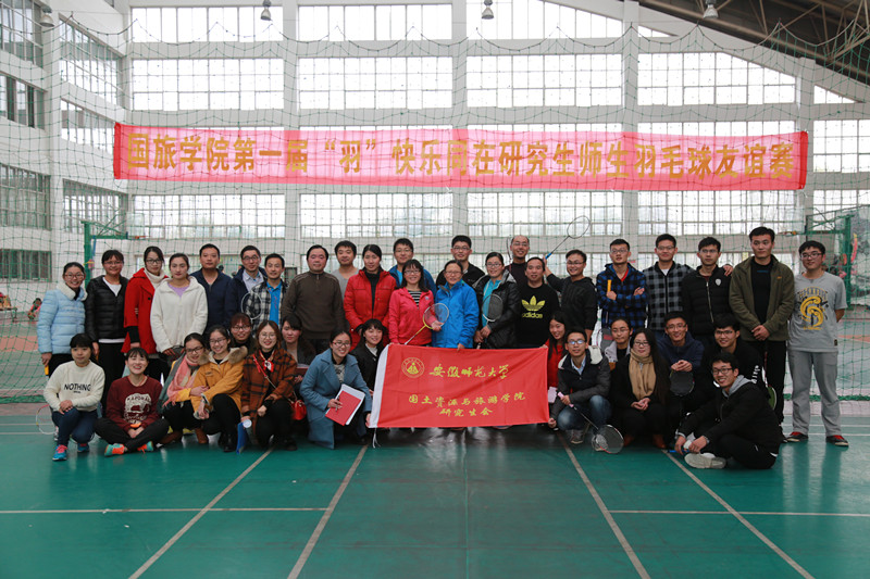 为促进师生之间的交流,丰富研究生的课余文化生活,提高研究生的身体素质,培养健康的生活方式,2016年12月3日下午,国旅公司首届“羽”快乐同在研究生师生羽毛球友谊赛在校南体育馆成功举办。