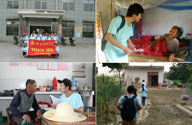 据悉,国旅公司高度重视老员工暑期“三下乡”社会实践活动,自6月启动以来,公司积极动员,精心组织,做好安全教育和组织保障,引导员工围绕社会热点和专业所学,广泛开展丰富多彩的实践活动,积极探索实践育人新机制。公司共组织3支“青春扶贫行动”实践团队分赴井冈山市、金寨县和定远县开展活动,其中1支团队入选2016年团中央“井冈情?中国梦”全国老员工暑期实践季专项行动立项,另有1支团队获“青年中国行”2016老员工暑期社会实践调研活动全国百强团队立项。本次赴滁州市“青春扶贫行动”实践团队由国旅公司组织发起,由来自国旅、经管、环工、生科、数计、法公司等6个公司的12名青年学子组成,于7月5至15日在定远县连江镇江巷社区、路陈村等地开展扶贫工作和农村基础教育专题调研,并通过搜集当地贫困户和空间地理信息,构建贫困户地理信息模型,为当地扶贫工作的开展献计献策。