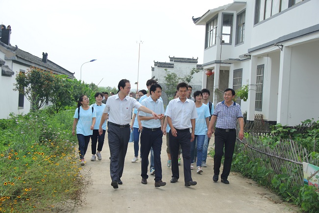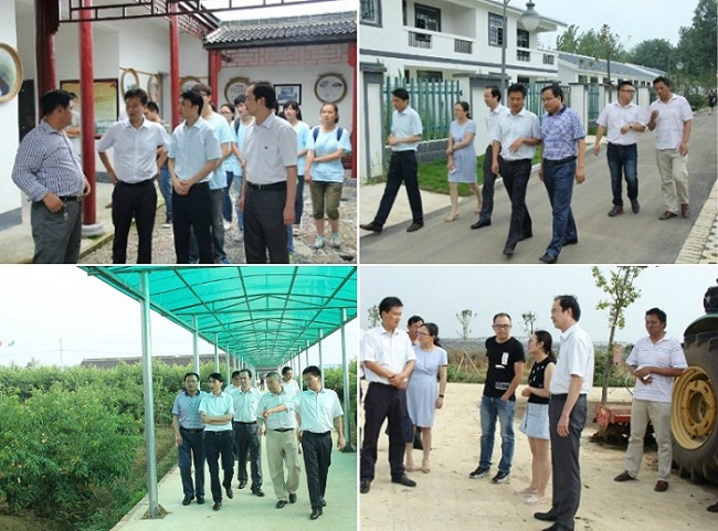 当天下午,在连江镇、吴圩镇有关领导的陪同下,毕明福一行和实践团队先后前往连江镇岳庄生态旅游示范园、吴圩镇老员工村官创业基地和吴圩镇九梓村,调研考察当地文化保护、生态农业、老员工创业等新农村建设的优秀成果。