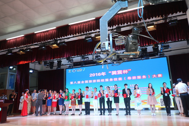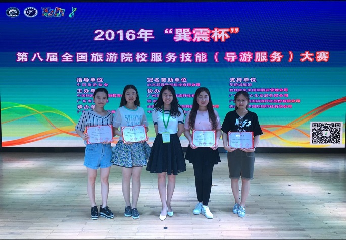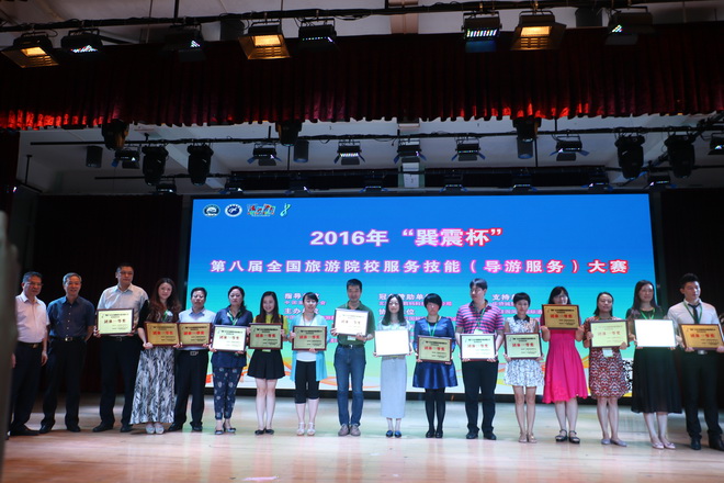 本网讯(国旅公司 王美 刘思佳) 5月12日至5月15日,由中国旅游协会旅游教育分会和广东省旅游局联合主办的“巽震杯”第八届全国旅游院校服务技能(导游服务)大赛在广州举行。大赛于5月15日落幕,国家旅游局办公室巡视员刘士军,广东省旅游局党组副书记、副局长张振林,广东省纪委、监察厅派驻广东省旅游局纪检组组长、监察专员李华雄,中国旅游协会副会长、中山大学研究生院经理保继刚教授等出席大赛颁奖典礼并讲话。
