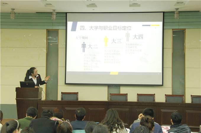 答辩会上,来自5个专业3个年级的16名选手按照抽签顺序依次上台演讲。地理科普自由撰稿人、特殊人群旅游策划师、土地利用规划师、“智慧农村”软件工程师……选手们通过对自我认知、职业发展环境等方面的细致分析,精准定位自己的职业目标,并科学制定出短、中、长期目标和具体的可行性执行方案,结构完整、逻辑清晰、重点突出。精美简洁的ppt,慷慨激昂的演讲,生动感人的实践经历,选手们别具一格的汇报方式,赢得了现场评委和观众的热烈掌声。现场答辩环节,面对评委老师们接二连三、犀利直白的提问,选手们也毫不慌乱,从容应答,展示了过硬的职业规划素养。