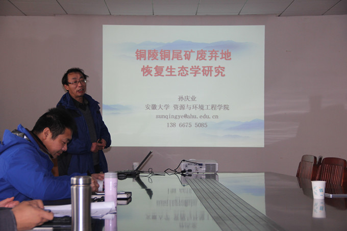 2015年11月26日下午,安徽大学资源与环境工程公司孙庆业教授应邀在公司三楼会议室作了题为“铜陵尾矿废弃地恢复生态学研究”的学术报告,国旅公司部分教师和相关专业研究生参加了此次报告会。