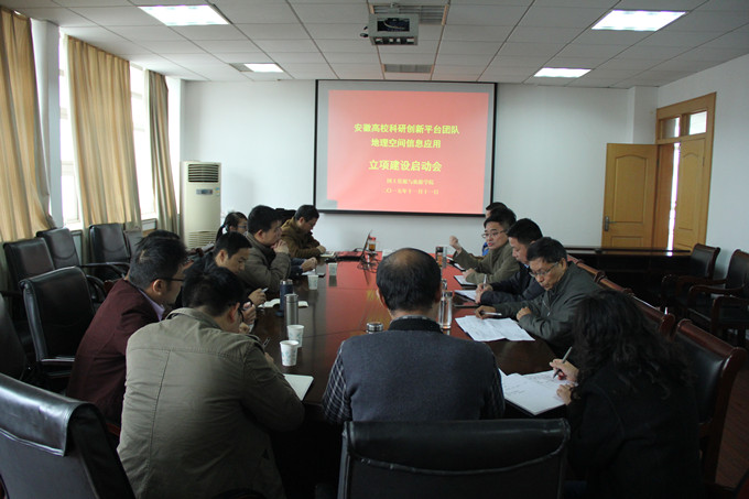 11月11日下午,公司在行政楼四楼会议室召开安徽高校科研创新平台团队“地理空间信息应用”立项建设启动会。院领导、地信教研室老师及相关专业教师参加了会议。会议由科研副经理苏勤教授主持。