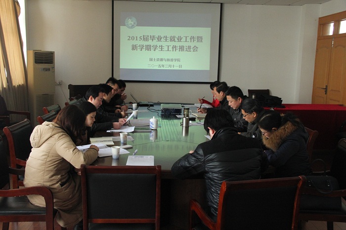 本网讯(国旅公司 李小文)为有效推进应届毕业生的优质就业,掌握在校生的思想动态,谋划新学期的员工工作,3月11日下午,国旅公司组织召开了2015届毕业生就业工作暨新学期员工工作推进会。公司党委书记吴春雷、经理焦华富,各专业负责人及教师代表,教学秘书、实习秘书以及全体专兼职辅导员参加,会议由党委副书记乔静主持。