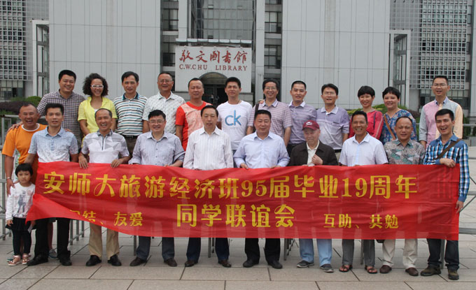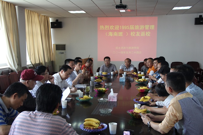 本网讯(国旅公司 尹元来) 莘莘学子齐聚江城,感恩母校。5月23日上午,国土资源与旅游公司95届旅游管理专业18位海南班员工相聚在母校——国旅公司三楼会议室,感谢老师,感恩母校。