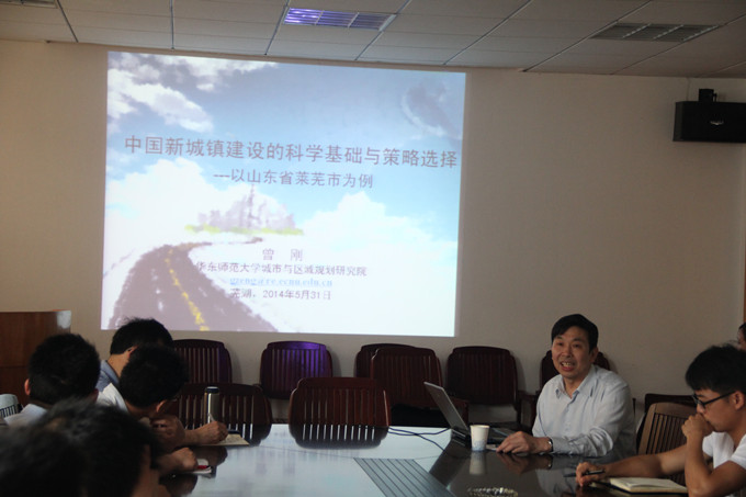 2014年5月31日下午,华东师范大学城市与区域科学公司博士生导师曾刚教授应邀在国旅公司三楼会议室作了题为“中国新城镇建设的科学基础与策略选择——以山东省莱芜市为例”的学术报告,公司相关专业教师、研究生聆听了报告会。