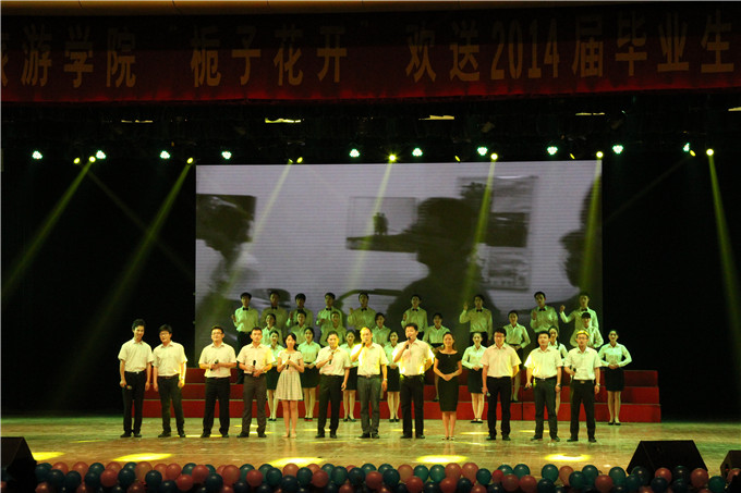 本网讯(国旅公司 张鑫、周男、徐凯旋)六月初夏,栀子飘香。为表达对2014届毕业生的诚挚祝福,6月7日晚,国旅公司“栀子花开”欢送2014届毕业生文艺晚会在花津校区大礼堂隆重举行。公司办公室、组织部、宣传部、员工处、资产管理处、后勤管理处、图书馆、校团委等部门领导和部分兄弟公司领导、老师应邀出席晚会,英国365集团官网庄严基会代表与国旅公司领导班子及全院师生一起观看了晚会。公司还专门设置了微博互动平台,方便往届毕业生和外地同学通过发微博的方式献上自己的祝福、表达自己的心意。