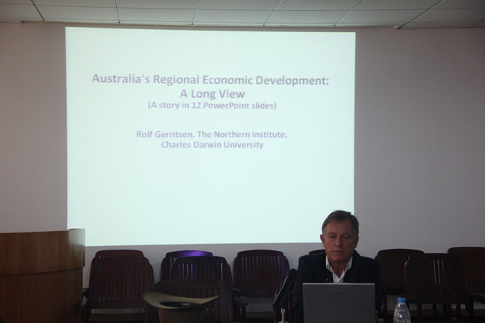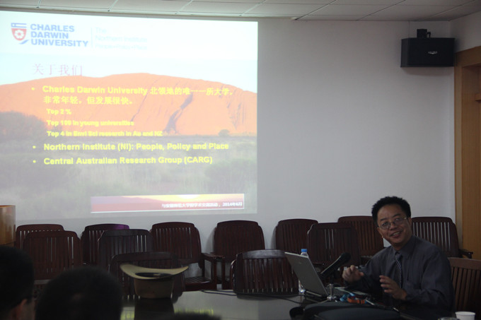 6月23日上午,查尔斯·达尔文大学北方研究所Prof.Rolf Gerritsen和曾本祥高级研究员在国旅公司三楼会议室分别作了题为 “澳大利亚的区域发展政策的变迁” 和“ 旅游开发、环境管理和区域发展”的学术报告。公司相关专业教师和研究生聆听了报告会。