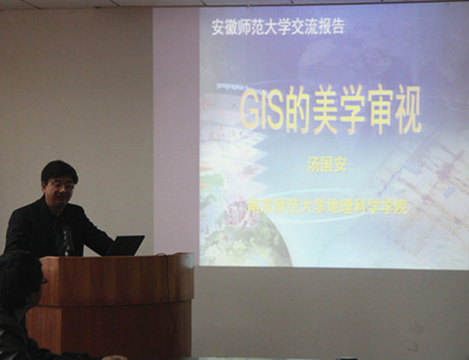 2014年3月29日,南京师范大学地理科学公司经理、博士生导师汤国安教授应邀在国旅公司行政楼三楼会议室,作了题为《GIS的美学审视》的学术报告。相关专业的教师和研究生、本科生聆听了报告。