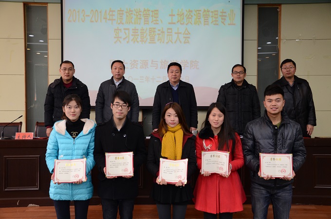首先,经理焦华富宣读了《关于表彰2010级旅游管理、土地资源管理第二批专业实习优秀小组、优秀个人和优秀案例的决定》,授予深圳圣庭院大酒店实习小组、南京国图信息产业股份有限公司实习小组“优秀实习小组”称号;授予焦晓晴等12人“优秀实习生”称号;夏萌等14名同学撰写的实习案例被评为“优秀实习案例”。