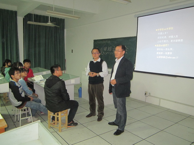(本网讯 陈健)10月16-17日晚,公司分别在实验楼101、201、212教室开展新生专业导航暨班主任见面会,公司党委副书记、专业教师、班主任及辅导员与13级新生共同参与了本次专题活动。