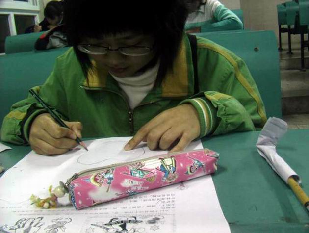 此次比赛主要面向08级新生,内容分为两部分:一是“三字”,包括粉笔字、钢笔字、毛笔字,二是“一笔”即简笔画。比赛在主持人宣读规则过后正式开始。“三字”和“一笔”比赛在两间教室同时进行。“三字”首先进行的是粉笔字比赛,由每位选手在黑板临摹《晓出净慈寺送林子方》,由评委现场打分。然后进行毛笔字与钢笔字比赛,由选手临场书写给出的诗句,时间不限,作品上交后进行评定。“一笔”分三项:临摹、命题作画和根据诗句创作。比赛中,选手们各尽其能,挥毫泼墨。