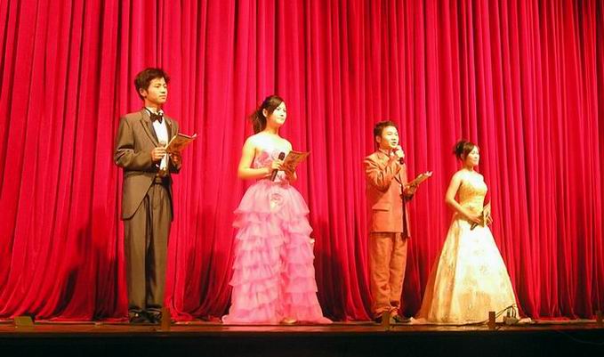 晚会在齿轮乐队富有激情的表演中拉开了的帷幕。二胡钢琴合奏《赛马》,民族舞《花溪 花溪》为晚会涂抹上华丽的色彩,演绎出老员工的青春与浪漫;活力四射的现代舞和扣人心弦的武术表演,给人以视觉上的震撼,不仅使观众欣赏到动感之美,更让人感受到老员工朝气蓬勃的精神风貌;小品《都是QQ惹的祸》更是将晚会推向了高潮,此次晚会的演员不仅有员工,老师也积极的参与进来,让整台晚会惊喜连连,由梁燕老师等表演的配乐诗朗诵《我们一起笑着哭着长大》就是以追忆大学四年生活的点点滴滴为素材而所创作的,饱含深情的朗诵让在场的每一位观众为之感动。歌曲串烧,戏曲连唱,女生独唱等精彩纷呈的节目使晚会高潮迭起。最后在优美动听的大合唱《让世界充满爱》歌声中,晚会落下帷幕。