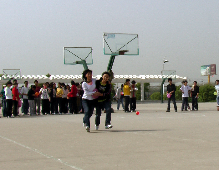 4月26日上午,由国旅公司员工会生活部主办的"迎奥运--寝室向前冲趣味运动会"在南校区篮球场拉开帷幕。国旅公司06,07级同学以寝室为单位参加比赛。同学们在一番轻松快乐地角逐中,活跃了各班气氛,在紧张的学习之余体会到了运动激情。