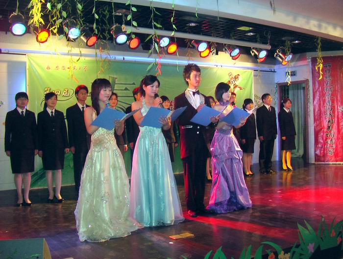 2008年我们师大人共同迎来了母校八十年华诞,八十年栉风沐雨,八十年立德育人。面对风雨沧桑八十岁的母校,每一位师大学子无不满怀对师大的感激和热爱,无刻不在努力丰富自己的知识,提高自己的素质,进一步弘扬师大传统,践行“厚德、重教、博学、笃行”的师大校训,做一名优秀的师大人。 或原创或改编,朗或古典或现代,老员工们用生动的语汇诠释着博大精深的文化、绚丽华美的文艺、灿烂华彩的盛世,作品《春日华诞》、《四月赞歌》、《听、嗅、看——献给80岁的师大》、《永写这辉煌》、《拿什么来爱你——我的师大》,从不同的视角颂扬母校,以诗文的强大魅力感染学子;以舞台剧形式朗诵的《赤壁》,让同学们感受到古典文学的魅力和博大精深;经改编的《我的雨巷》,那难忘的“丁香一样的姑娘”带我们走进梦一般优美意境;原创作品《守望家园》生动感人的警示:经济科技发展一日千里,留守儿童、环境保护不容忽视,我们要从身边小事做起,向世界展示一场绿色奥运、一个绿色中国。《感动2008》让我们又一次感受了那众志成城共抗雪灾的动人场面,十二件作品件件是精品,选手们尽显朗诵技巧,表演淋漓尽致,令观众赞叹不已,体现了当代老员工较高的审美情操和创新意识,反映出作为公司办学特色之一的“第二课堂素质教育”活动已取得的丰硕成果,更好的落实了胡总书提出的“要努力造就高素质人才”的要求。