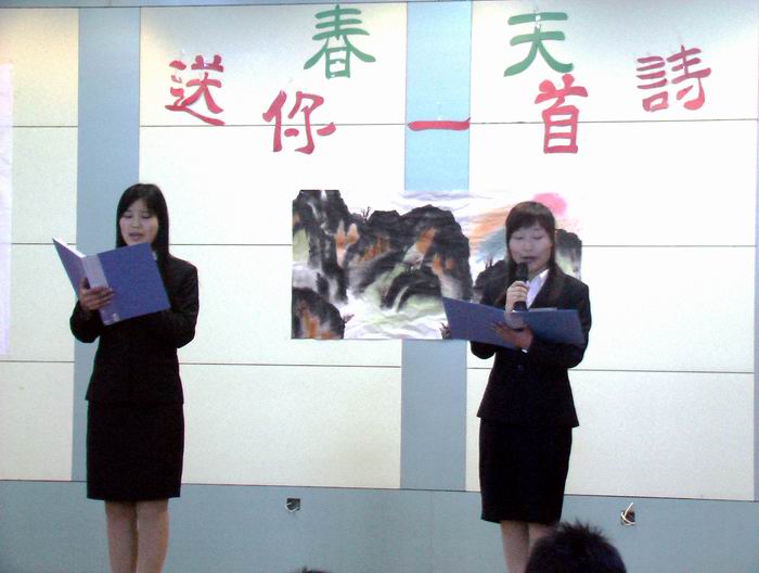 4月6日晚6点20分国旅公司承办的校第四届“春天送你一首诗”配乐诗文朗诵大赛初赛在院实验楼121教室正式拉开帷幕。院团委书记梁燕老师、07级辅导员胡春生老师、杨积芳老师、汪青老师、院员工会主席宋续及各部部长参加比赛并担任评委。