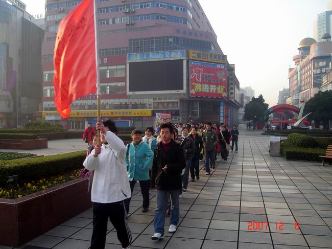 12月8日,国旅公司07旅游管理专业的120多名同学在辅导员的倡议下,开展了从花津校区到赭山公园7公里徒步拉练活动。