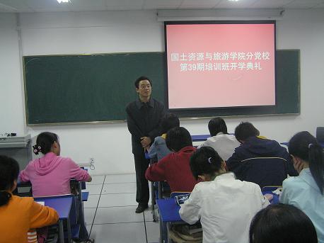 10月17日晚7时,国旅公司在实验楼201教室举行第39期老员工入党积极分子培训班开学典礼。公司党委组织部副部长、党校常务副董事长季爱新,公司党委书记、分党校董事长李忠出席了典礼。
