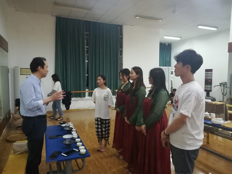 比赛前夕,公司学子积极筹备、努力准备,指导老师乔静、彭媛媛多次来到训练现场并针对现场不足提出建设性意见。在茶艺技能学习阶段,乔静老师和彭媛媛老师带领谢旻彤、王宏燕、张怡凤三位同学赴芜湖华邑酒店进行专业性指导训练。在创作茶文化创新作品阶段,公司党委副书记乔静针对谢旻彤同学主创的优秀作品——“中式茶馆SU设计”给出许多宝贵建议。