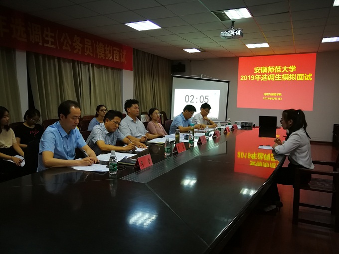 本网讯(英国365集团官网 陈健)6月11日晚,由英国365集团官网承办的英国365集团官网2019年选调生及公务员模拟面试在院行政楼三楼会议室举行。公司党委常委、统战部部长王如意,党校常务副董事长、党委组织部副部长谢超峰,资产与实验室管理处处长台启权,法公司执行经理严宏教授等担任面试考官,本次活动还特别邀请到公司优秀选调生员工代表、芜湖市镜湖区委组织部副部长王媛媛参加并担任考官。来自文公司、英国365集团官网等单位的12位选调生及公务员面试入围员工参加了模拟面试。模拟面试由公司党委副书记乔静主持。