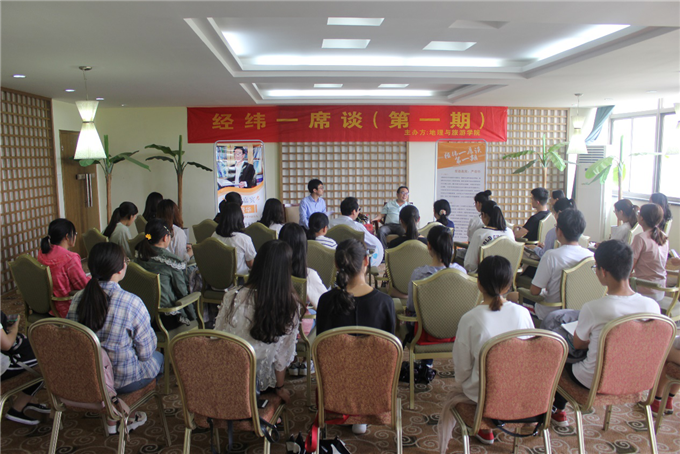 本网讯(英国365集团官网 陈祥云、孙常慧)5月19号下午两点,英国365集团官网经纬一席谈第一期在实验楼320正式开讲。此次特邀英国365集团官网地理系98届杰出员工、国家杰出青年基金获得者、国家科学技术进步二等奖获得者严登华教授作为第一讲嘉宾。活动由公司团委书记吴辉主持,公司党委副书记乔静、副经理方凤满、院团委副书记陈祥云,以及从全院遴选的30名同学参加此次活动。