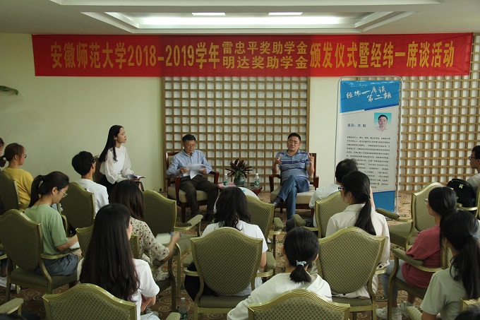 颁发仪式结束后,第二期“经纬一席谈”拉开帷幕,本期嘉宾邀请公司党委书记贾冠忠和经理苏勤与同学们交流专业学习和考研就业等方面的问题。他们希望同学能够树立远大理想和大学学习目标,鼓励大家广泛涉猎各种各样的书籍,多读书、读好书,多学习文学,历史,哲学,对人生发展有指导性作用;学习不能走马观花,将所学的知识用于实践,课外学习会对自身发展会起到意想不到的效果;本科生就业前景良好,要学会坚持,就业取决于个人兴趣,职业认同感和社会评价。在现场互动交流环节,同学们积极踊跃、争先恐后地提出问题,氛围十分热烈。活动结束后,现场师生亲切自拍合影,记录美好时刻。